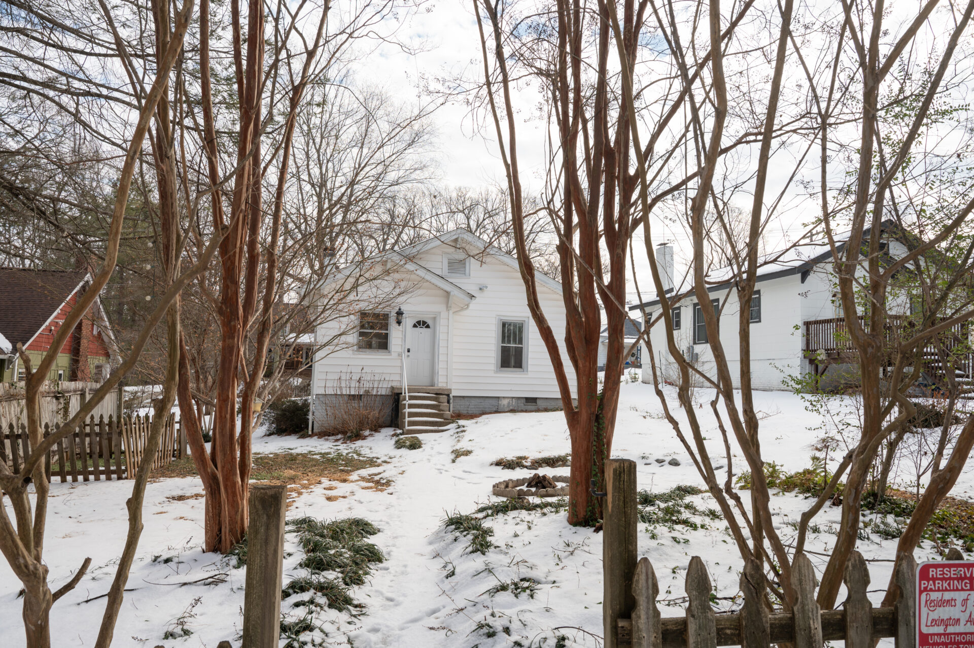 Gorgeous opportunity in Glenwood! Near UNCG and Greensboro College and downtown, this gem has refinished original hardwood floors and new paint! Awesome front porch with ceiling fan (great for napping!), huge living room/dining room combo with room for entertaining, original swinging door to large kitchen with tons of cabinets and shelves to display pottery, dishes, or anything you desire. Updated flooring in large primary, all one floor, room for storage in the attic with pull down stairs. Rear driveway accessible from alleyway, patio with fire pit, garden space, and wired studio/storage building. Updated plumbing and insulation (low utility bills!) and you can even join the UNCG Rec center with a student discount. This home has everything you need to get started as a homeowner – come check it out!