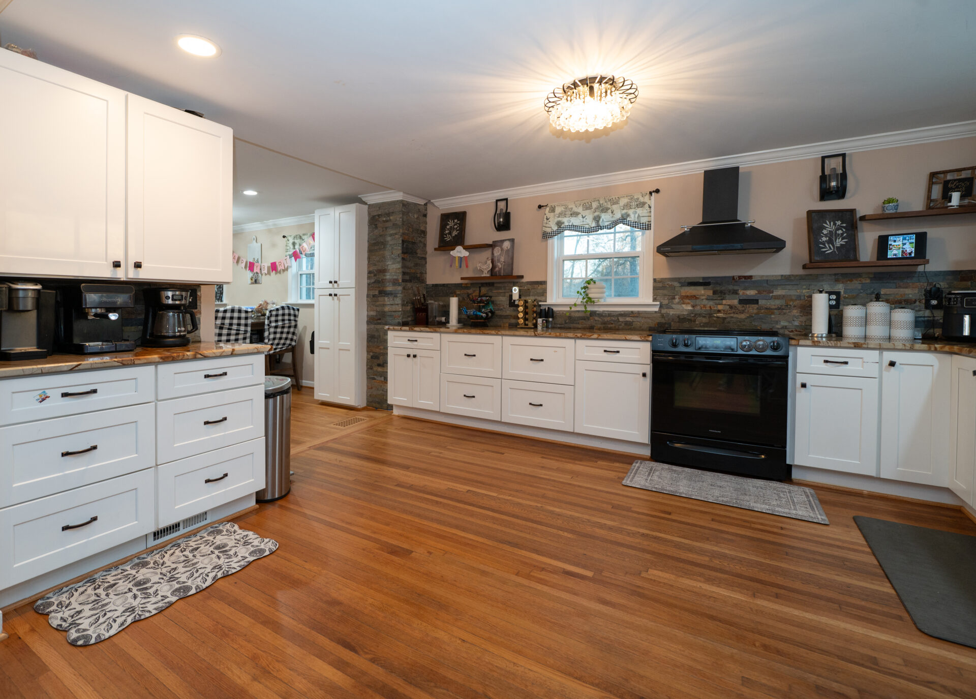 Amazing home with so much to offer! Recently added rocking chair front porch, replacement windows, large living room, hardwoods throughout. Sunroom currently used as plant greenhouse, circle driveway with attached carport with EV charging station & additional detached one-car garage. Large kitchen with granite countertops and lots of cabinets. Four bedrooms, updated bathrooms, TONS of closet and storage space, plus finished basement for expansion. And a stream runs through the yard, make it an idyllic location yet still convenient. Check it out!
